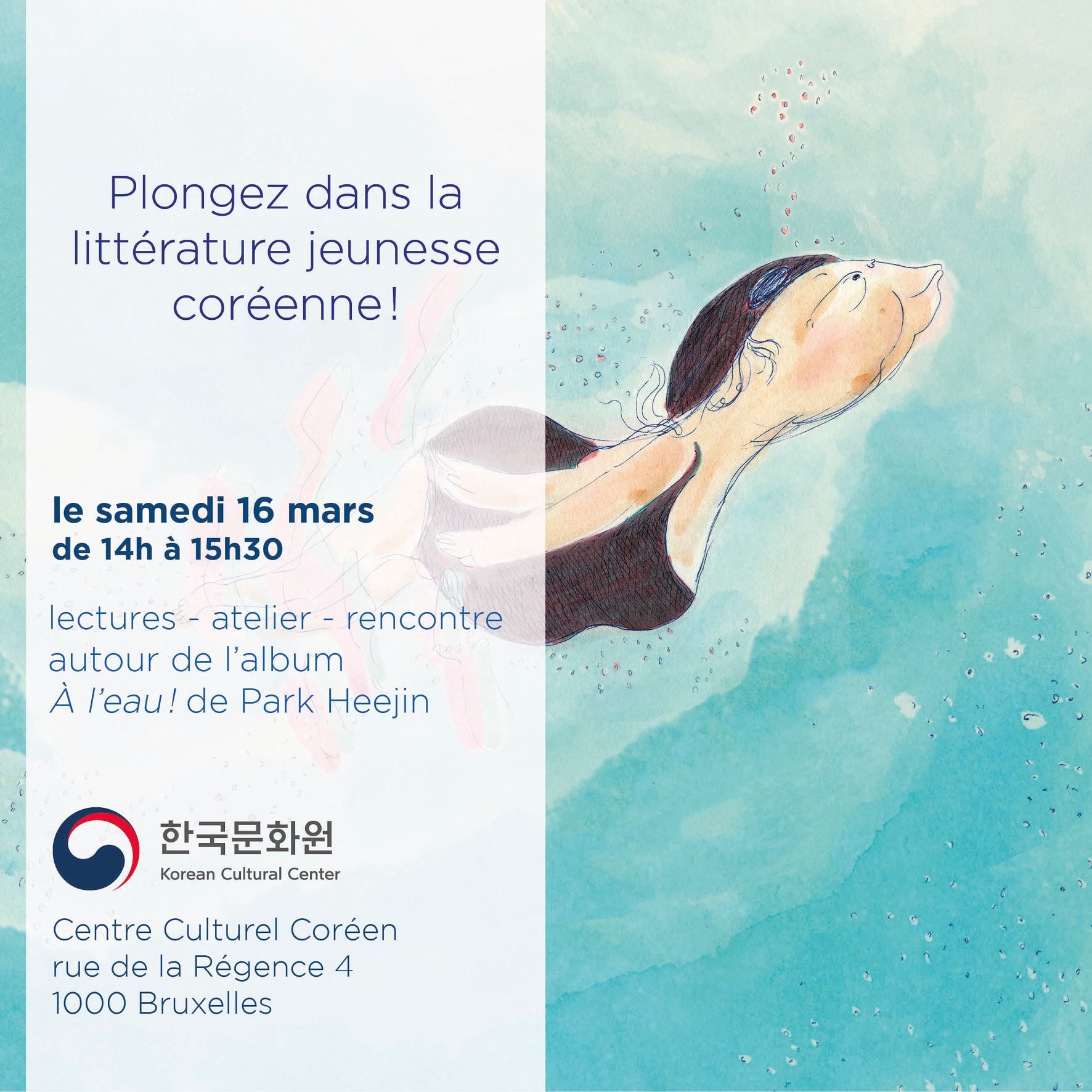 Come by the KCC and dive into the world of Korean children's literature on the occasion of the publication of the picturebook À l'eau! by Heejin Park which was published by CotCotCot.!'